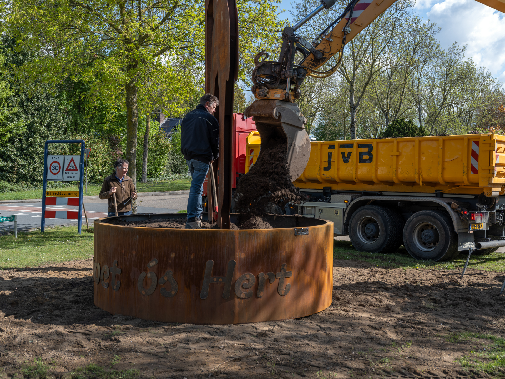 Een indrukwekkend standbeeld van maar liefst 7 meter hoog, uitgevoerd in stoer cortenstaal. Het symbool van het OLS staat trots op een fraaie voet, voorzien van het OLS-logo en onze slogan: Vanoet ós hert!